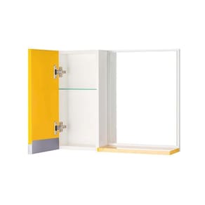 Armário para Banheiro com Espelho na cor Amarelo e Branco é ideal para organizar vários itens. Possui prateleira interna em vidro, armário com porta e amplo espelho. É a escolha perfeita para seu banheiro.