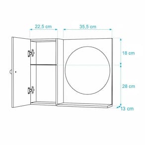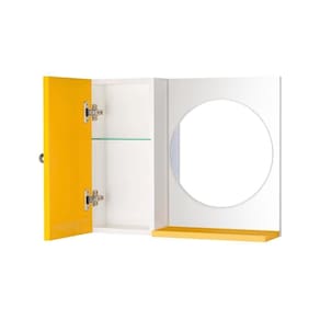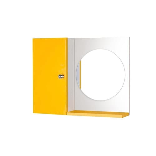Armário para Banheiro com Espelho Redondo Amarelo. Já vem montado, pronto para colocar na parede. É só abrir a caixa e instalar em seu banheiro. Acompanha 2 parafusos com buchas para instalar na parede. Obs: a colocação dele na parede é por conta do cliente, mas é bem fácil de fazer, basta uma furadeira, régua e lápis para marcar o local de instalação. Basta colocar os dois parafusos na parede, depois encaixar o armário com espelho neles (tem 2 suportes metálicos atrás do armário, para encaixar nos parafusos). Armário para Banheiro com Espelho na cor Amarelo é ideal para organizar vários itens. Possui prateleira interna em vidro, armário com porta e amplo espelho. É a escolha perfeita para seu banheiro. Material: MDP 15mm Cor: Amarelo e Branco Altura total: 46cm Largura total: 58cm Profundidade total: 12,5cm Instalação: a montagem e instalação do produto na parede são por conta do cliente Limpeza e conservação: recomenda-se a limpeza com pano úmido, não utilizar produtos abrasivos ou químicos Obs: Este anuncio inclui somente o armário com espelho, todos os itens de decoração das fotos não estão inclusos.