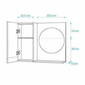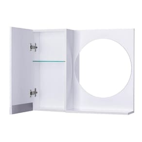 Armário para Banheiro com Espelho Redondo Branco com Puxador de Metal. Já vem montado, pronto para colocar na parede. É só abrir a caixa e instalar em seu banheiro. Acompanha 2 parafusos com buchas para instalar na parede.