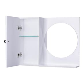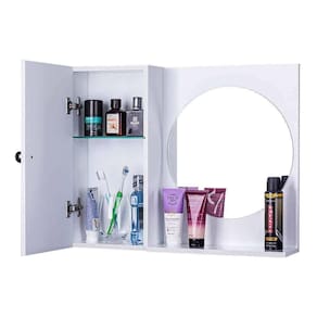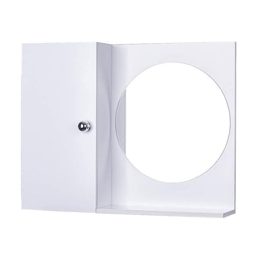 Armário para Banheiro com Espelho Redondo Branco. Já vem montado, pronto para colocar na parede. É só abrir a caixa e instalar em seu banheiro. Acompanha 2 parafusos com buchas para instalar na parede. Obs: a colocação dele na parede é por conta do cliente, mas é bem fácil de fazer, basta uma furadeira, régua e lápis para marcar o local de instalação. Basta colocar os dois parafusos na parede, depois encaixar o armário com espelho neles (tem 2 suportes metálicos atrás do armário, para encaixar nos parafusos). Armário para Banheiro com Espelho na cor Branca é ideal para organizar vários itens. Possui prateleira interna em vidro, armário com porta e amplo espelho. É a escolha perfeita para seu banheiro. Material: MDF 12mm com pintura UV branca Altura total: 46cm Largura total: 58cm Profundidade total: 12,5cm Instalação: a montagem e instalação do produto na parede são por conta do cliente Limpeza e conservação: recomenda-se a limpeza com pano úmido, não utilizar produtos abrasivos ou químicos Obs: Este anuncio inclui somente o armário com espelho, todos os itens de decoração das fotos não estão inclusos.
