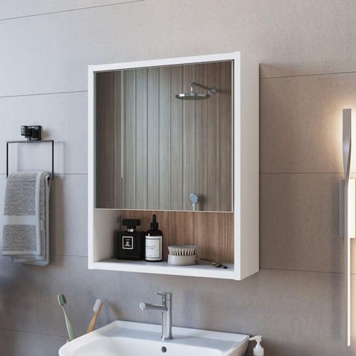 Aéreo lavabo linha Slim possui excelente espaço para organização dos itens de uso diário. Praticidade, conforto e design moderno para o banheiro. Pensando em custo benefício, mas sem perder qualidade, estes móveis são produzidos 100% em MDP. Acabamento da Porta: Finish Foil Acabamento da Prateleira: Finish Foil Altura do Espelho: 35,5 cm Ambiente Principal: Banheiro Complexidade da Montagem: Baixa: pode ser montado por uma pessoa sozinha Composição: 100% MDP Cor: Branco / Montana Cor do Produto: Branco / Montana Cor Flex: Não Cor Interna: Marrom Escala de Brilho: Fosco Espessura do Espelho: 3 mm Espessura do Material da Estrutura: 15 mm Formato do Espelho: Retangular Itens Inclusos: 1 espelheira e manual de montagem Largura do Espelho: 37,8 cm Linha ou Coleção: Armário Banheiro Manual de Montagem e Instalação: https://cdn2.madeiramadeira.com.br/atributo/nova-mobile/1771611-7898463866270-5-b85-manual-montagem-portugues-espanhol.pdf Material da Porta: MDP Material da Prateleira: MDP Material Principal: MDP Montagem Flex: Não Necessita Montagem: Sim Origem do Produto: Nacional Peso: 9,7 kg Peso Máximo por Prateleira: 5 kg Possui Espelho: 01 Possui iluminação: Não Possui Portas: 01 Possui Prateleiras: 02 Possui Toalheiro: Não Possui Tomadas: Não Recomendações de Uso, Manutenção e Limpeza: Para a limpeza do móvel utilizar uma flanela seca. Sistema de Montagem: Parafusos, cavilhas e minifix Tipo de Dobradiça/Corrediça da Porta: Metálica Tipo de Fixação do Espelho: Silicone Tipo de Porta: Bater Tipo de Puxador da Porta: Não Possui