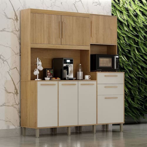 Armário para Cozinha 7 Portas 2 Gavetas 180,8cm Citrino Yescasa Cinamomo/Off White - Bege