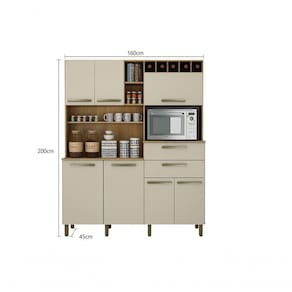 Armario Para Cozinha 7 Portas Monte Rey Valdemoveis O Armário Monte Rey Valdemóveis é produzido de MDP/MDF com acabamento em pintura UV que protege o produto de raios solares. Mede 2m de altura e 1,60m de largura. O Armário Monte Rey possui 7 portas (6 Portas de Bater e 1 Basculante), 2 gavetas externas e 4 Prateleiras. Além disso, possui um espaço onde você pode armazenar seu forno.