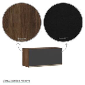 Características Corpo/Caixaria: MDP - Nogueira Dourado - FF. Frontais: MDP - Acabamentos em BP. Dobradiças: 35mm Slow motion. Puxadores: Alumínio Gola - Inox. Porta: 1 basculante. Pistão a gás de 80N. Montagem com Minifix, Parafusos e cavilhas.