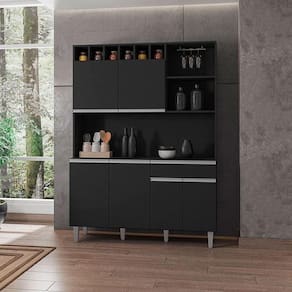 O armário pra sua cozinha você encontra aqui! Apresentamos a você esse lindo modelo desenvolvido pela AJL ideal para ambientes compactos que não possuem muito espaço, o Kit da linha Alice conta com um design lindo e delicado na cor Preto Fosco, ótimas divisões que irão lhe auxiliar na organização dos seus utensílios, fabricado com materiais de ótimas qualidades para maior resistência e durabilidade do móvel. Confira!