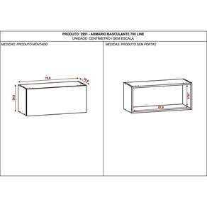 O Armário Basculante 700 Line é produzido em MDP em 15 mm, matéria prima que respeita o meio ambiente. Possui 1 porta que conta com dobradiças 100% metálicas e pistão à gas para garantir a suavidade e segurança no abrir e fechar. Utiliza-se porta com sistema avançado de abertura, a porta sendo maior do que a estrutura do armário avançando sobre a base e tendo transpasse de 5 mm para que seja possível a abertura sem puxador. Acabamento de pintura com secagem em luzes UV e aplicação de textura sensível ao toque. Acabamento da Porta: Pintura Texturizada UV Ambiente Principal: Cozinha Complexidade da Montagem: Média: pode ser montado por mais de uma pessoa e/ou necessite de maior conhecimento para montagem Cor: Supremo Cor do Produto: Supremo Cor Interna: Supremo Escala de Brilho: Fosco Escala de Brilho da Porta: Fosco Itens Inclusos: 1 Armário, Kit Ferragens e Manual de Montagem Manual de Montagem e Instalação: https://cdn2.madeiramadeira.com.br/atributo/kits-parana/1123811-2951-armArio-basculante-700-line.pdf Material da Dobradiça/Corrediça da Porta: Metálica Material da Porta: MDP Material Principal: MDP Necessita Montagem: Sim Origem do Produto: Nacional Peso: 7.8 Possui Espelho: Não Possui Possui Pés: Não Possui Portas: 01 Possui Prateleiras: Não Recomendações de Uso, Manutenção e Limpeza: Limpeza do produto somente com pano seco ou levemente umedecido, não utilizar abrasivos. Respeitar o limite de peso estabelecido no esquema de montagem. Evitar mover o produto com utensílios dentro. Sapatas Niveladoras: Não Sistema de Montagem: Cavilhas, pregos e parafusos Suporta Até (kg): 10 Tipo de Dobradiça/Corrediça da Porta: Simples Tipo de Porta: Basculante Tipo de Puxador da Porta: Embutido