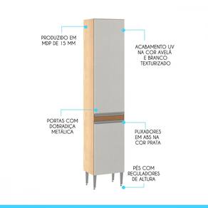 Características: Produzido em MDP de 15 mm Acabamento UV Texturizado Portas com Dobradiças Metálicas Puxadores Perfil em ABS Pés Reguláveis em ABS Prateleiras suportam 5 Kg