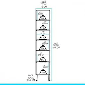 Dimensões: Altura: 202 cm Largura: 40 cm Profundidade: 31,5 cm Peso: 26,7 kg