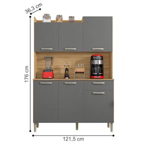 O Armário irá se tornar o charme de sua cozinha, seu design diferenciado dispõe de um nicho para decoração superior podendo ser utilizado para vasos, flores e outros. Tem a sua disposição de um grande espaço para Eltrodomésticos podendo acomodar um micro-ondas, sua matéria prima valoriza o meio ambiente sendo feita de madeira de reflorestamento. Com acabamento fosco e textura sensível ao toque em vários padrões mordernos.