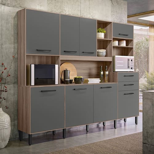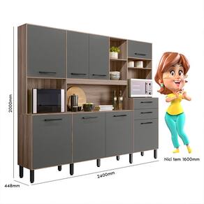 Armário para Cozinha Completo com Nicho para Forno 240x200cm Hortelã Nicioli - Cinza