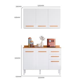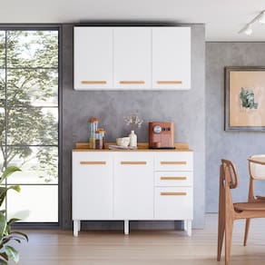 O balcão composto por 3 portas e 2 gavetas é ideal tanto para bancada mas também sendo possível utilizar como balcão pra pia. Já o aereo contem 3 portas, com prateleira interna ideal para armazenamento dos seus mantimentos e praticidade no seu dia dia. Acabamento da Prateleira: Pintura UV Escala de Brilho da Prateleira: Semi-Brilho Acabamento da Gaveta: Pintura UV Escala de Brilho da Gaveta: Semi-Brilho Material do Puxador da Gaveta: MDF Acabamento da Porta: Pintura UV Escala de Brilho da Porta: Semi-Brilho Material do Puxador da Porta: MDF Acompanha Rodapé Decorativo: Não Acompanha Tampo: Sim Ambiente Principal: Cozinha Balcão Suporta Pia: Sim codigo_ean: 7900288107336 Complexidade da Montagem: Média: pode ser montado por mais de uma pessoa e/ou necessite de maior conhecimento para montagem Cor: Branco Cor do Produto: Branco Cor Interna: Branco Escala de Brilho: Semi-Brilho Espessura do Material da Estrutura: 12 mm Espessura do Tampo: 15 mm Gaveta com Chave: Não Informações Complementares: POR PRATELEIRA Itens Inclusos: 1 Armário, Manual de Montagem Linha ou Coleção: AMORE Manual de Especificação Técnica: https://product-hub-prd.madeiramadeira.com.br/983848/documents/0c53b3d6-fd33-4f94-9783-c174843320a22777505630917435361282928.pdf Manual de Montagem e Instalação: https://product-hub-prd.madeiramadeira.com.br/983848/documents/b28dc7d1-e97d-4e8d-8577-9c732165a4f42777504630917435360373837.pdf Marca: Nicioli Material da Dobradiça/Corrediça da Porta: Metálica Material da Gaveta: MDP Material da Porta: MDP Material da Prateleira: MDP Material dos Pés: Polipropileno modular: Sim Necessita Montagem: Sim O Balcão Acompanha Pia: Não Origem do Produto: Nacional Pés Reguláveis: Sim Peso: 54,97 kg Peso Máximo por Gaveta: 8 kg Peso Máximo por Prateleira: 8 kg Possui Espelho: Não Possui Possui Pés: 05 Possui Portas: Sim Possui Prateleiras: Sim Possui Rodízio: Não Possui Vidro: Não Produto Montado: Sim Recomendações de Uso, Manutenção e Limpeza: Limpeza com pano macio e levemente umedecido. Não utilizar solventes a base e de inflamáveis. Não utilizar produtos abrasivos. Sapatas Niveladoras: Sim Sistema de Montagem: PARAFUSOS, CAVILHAS E ACESSÓRIOS Suporta Até (kg): 8 kg Tamanho Indicado da Pia: 1,20 x 0,53 Tipo de Corrediça da Gaveta: Metálica Telescópica Tipo de Dobradiça da Porta: 35 mm Tipo de Dobradiça/Corrediça da Porta: 35 mm Tipo de Puxador da Gaveta: Externo Tipo de Puxador da Porta: Externo