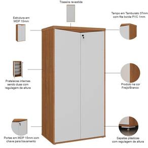 Organize seu escritório com estilo e segurança com o Armário para Escritório 02 Portas 160cm com Chave Unik Freijó Branco. Com tampo e base de tamburato de alta qualidade e resistência, esse armário alto é perfeito para armazenar seus documentos e materiais de trabalho.
