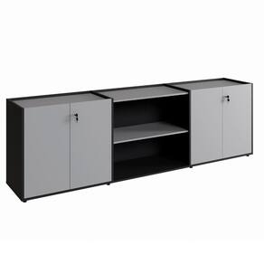 Armário para Escritório 240cm com 4 Portas Nicho e Tampo Embutido Corporate Cinza Sagrado / Preto