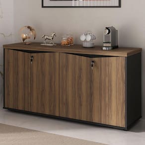 O(a) Armário para Escritório 4 Portas Nogal/Preto - Artany Móveis é produzido em MDP na escala de brilho Semi-Fosco, e possui um grau de dificuldade de montagem: Médio.