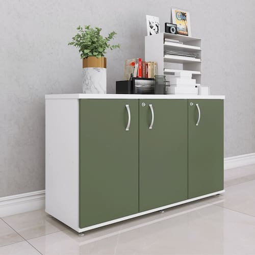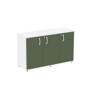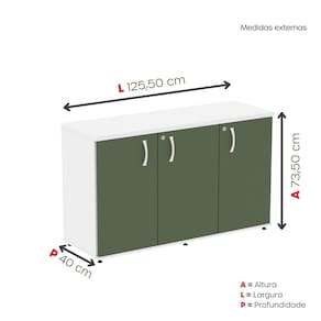 Armário para Escritório Credenza 03 Portas Pivotante Branco/Salvia