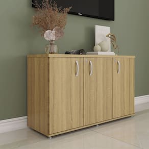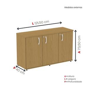 Seu design clean combina facilmente com diferentes mobílias, mantendo a harmonia da decoração. Ideal para o dia a dia de trabalho, é perfeito para deixar seu ambiente organizado, funcional e elegante. Acabamento da Porta: BP Acabamento da Prateleira: BP Ambiente Principal: Escritório Armário Suspenso: Não codigo_ean: 7900288163844 Complexidade da Montagem: Média: pode ser montado por mais de uma pessoa e/ou necessite de maior conhecimento para montagem Cor: Samba Cor do Produto: Samba Cor Interna: Samba Escala de Brilho: Semi-Fosco Escala de Brilho da Porta: Semi-Fosco Escala de Brilho da Prateleira: Semi-Fosco Formato do Armário: Retangular Itens Inclusos: 1 Armário, 1 Manual de Montagem Manual de Montagem e Instalação: https://product-hub-prd.madeiramadeira.com.br/153090613/documents/5cafa0d0-a1fb-47f5-a09e-2e9b66d804732723979387017411828145805.pdf Marca: Pandin Móveis Material da Porta: MDP Material da Prateleira: MDP Material dos Pés: Polipropileno Material Principal: MDP Necessita Montagem: Sim Orientação do Armário: Horizontal Origem do Produto: Nacional Peso: 38,882 kg Peso Máximo por Prateleira: 15 kg Possui Espelho: Não Possui Mesa Retrátil: Não Possui Pés: 04 Possui Portas: 03 Possui Prateleiras: 03 Quantidade de Armários: 1 Recomendações de Uso, Manutenção e Limpeza: Limpeza feita com um pano levemente umedecido e um pano seco. Sapatas Niveladoras: Sim Sistema de Montagem: Parafuso Suporta Até (kg): 30 kg Tamanho do Armário: Baixo (Até 90cm) Tipo de Armário: Totalmente Fechado Tipo de Dobradiça/Corrediça da Porta: Alumínio Tipo de Puxador da Porta: Externo Marca: Não Informado
