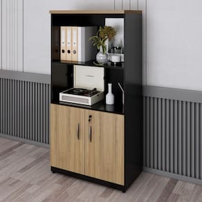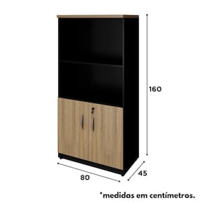 e com uma união com perfil em ABS extrusado realizando a ligação dos mesmos. Fundo sendo fixado com pinos em aço. Portas em Mdp 1,5 cm de espessura, em todo. Acabamento da Porta: BP Acabamento da Prateleira: BP Ambiente Principal: Escritório Complexidade da Montagem: Média: pode ser montado por mais de uma pessoa e/ou necessite de maior conhecimento para montagem Cor: Amadeirado/Preto Cor do Produto: Amadeirado/Preto Escala de Brilho: Fosco Escala de Brilho da Porta: Fosco Escala de Brilho da Prateleira: Fosco Espessura do Tampo: 30 mm Itens Inclusos: 1 armário Manual de Montagem e Instalação: https://product-hub-prd.madeiramadeira.com.br/956585/documents/10180a37-fce6-47a7-9e9f-87d6ee43a5042441967159817285859124827.pdf Material da Porta: MDP Material da Prateleira: MDP Material Principal: MDP Necessita Montagem: Sim Origem do Produto: Nacional Peso: 41,5 kg Peso Máximo por Prateleira: 15 kg Possui Espelho: Não Possui Pés: Não Possui Portas: 02 Possui Prateleiras: 01 Recomendações de Uso, Manutenção e Limpeza: pano úmido Sapatas Niveladoras: Não Sistema de Montagem: parafusos e cavilhas Suporta Até (kg): 75 kg Tipo de Dobradiça/Corrediça da Porta: Metálica Tipo de Puxador da Porta: Externo