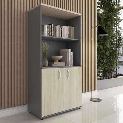 Organize seu espaço com praticidade e estilo! Este armário possui tampo robusto de 2,5cm com acabamento em fita ABS de 1mm, garantindo durabilidade e sofisticação. Com gabinete em MDP de 1,5cm, proporcionando versatilidade para armazenar documentos, livros e outros itens essenciais.