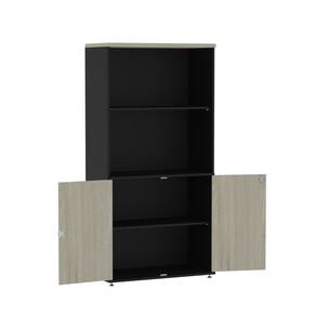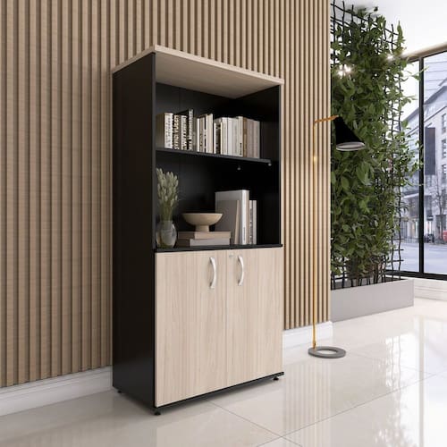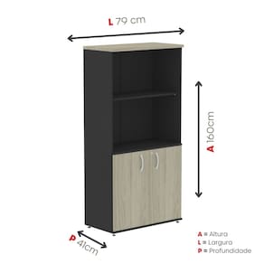 Armário para Escritório Misto 02 Portas Pivotante Preto/Nogueira - Marrom
