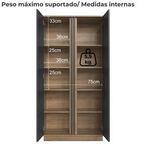 Com design diferenciado o Armário foi desenvolvido para aliar modernidade e organização, tornando qualquer ambiente de trabalho ou home office ainda mais funcional e estiloso. Produzido em MDP 15 mm (que suporta até 55Kg distribuídos). Conta com 2 portas com dobradiças metálicas e detalhes ripados no batente, 10 prateleiras internas (que suportam até 5,5 kg cada), puxadores tipo cava e rodapé integrado (de 7 cm). Acabamento em impressão UV texturizada fosca. Este móvel será entregue em 01 volume.
