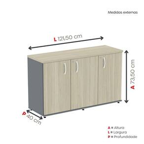 Seu design clean combina facilmente com diferentes mobílias, mantendo a harmonia da decoração. Ideal para o dia a dia de trabalho, é perfeito para deixar seu ambiente organizado, funcional e elegante. Acabamento da Porta: BP Acabamento da Prateleira: BP Ambiente Principal: Escritório Armário Suspenso: Não codigo_ean: 7900288164070 Complexidade da Montagem: Média: pode ser montado por mais de uma pessoa e/ou necessite de maior conhecimento para montagem Cor: Grafito/Castanheira Cor do Produto: Grafito/Castanheira Cor Interna: Grafito/Castanheira Escala de Brilho: Semi-Fosco Escala de Brilho da Porta: Semi-Fosco Escala de Brilho da Prateleira: Semi-Fosco Formato do Armário: Retangular Itens Inclusos: 1 Armário e Manual de Montagem Linha ou Coleção: Credenza Manual de Montagem e Instalação: https://product-hub-prd.madeiramadeira.com.br/806965678/documents/d1b5d190-509f-4eb2-a746-3a8c95cef3a42723979387017411828145805.pdf Marca: Pandin Móveis Material da Porta: MDP Material da Prateleira: MDP Material dos Pés: Polipropileno Material Principal: MDP Necessita Montagem: Sim Orientação do Armário: Horizontal Origem do Produto: Nacional Peso: 38,882 kg Peso Máximo por Prateleira: 15 kg Possui Espelho: Não Possui Mesa Retrátil: Não Possui Pés: 06 Possui Portas: 03 Possui Prateleiras: 03 Quantidade de Armários: 1 Recomendações de Uso, Manutenção e Limpeza: Limpeza feita com um pano levemente umedecido e um pano seco. Sapatas Niveladoras: Sim Sistema de Montagem: Parafuso Suporta Até (kg): 30 kg Tamanho do Armário: Baixo (Até 90cm) Tipo de Armário: Totalmente Fechado Tipo de Dobradiça/Corrediça da Porta: Alumínio Tipo de Puxador da Porta: Externo Marca: Não Informado