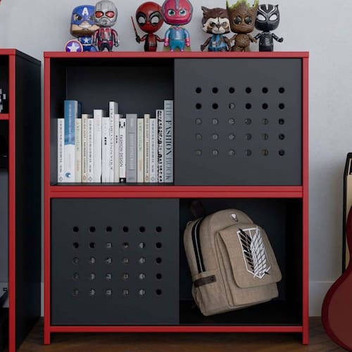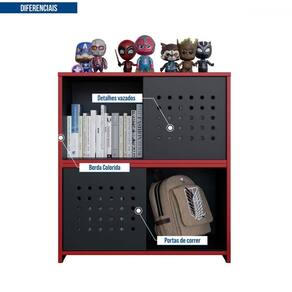 O(a) Armário para Escritório Pixel 2 Portas 1 Prateleira Preto/Vermelho - Caemmun é produzido em MDP na escala de brilho Fosco, e possui um grau de dificuldade de montagem: Médio.