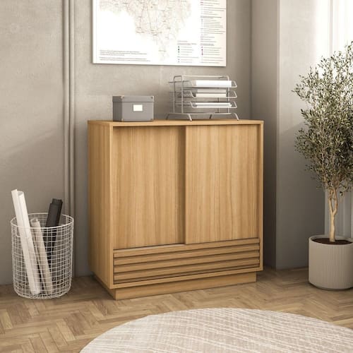 Transforme seu espaço com o Armário para Escritório Samambaia Cabecasa, que une o estilo Japandi à máxima funcionalidade. Seu design moderno e prático é ideal para quem valoriza estilo e eficiência. Com três prateleiras e uma gaveta, ela oferece amplo espaço para organização. Seus maiores diferenciais estão na atenção aos detalhes, seu acabamento em pintura UV premium garante uma superfície lisa e duradoura, com dimensões generosas e corrediças telescópicas de alta resistência garantem gaveta com extração total e um deslizamento suave. Feita em MDP de alta qualidade e detalhes ripados em MDF com puxadores discretos em cava, combinando elegância e versatilidade. Perfeita para qualquer ambiente, ela traz charme e organização, criando um espaço harmonioso e acolhedor. É a escolha ideal para um ambiente completo e conceitual, complementando sua decoração com estilo junto aos demais produtos da linha Samambaia. Acabamento da Gaveta: Pintura UV Acabamento da Porta: Pintura UV Acabamento da Prateleira: Pintura UV Ambiente Principal: Escritório Armário Suspenso: Não Complexidade da Montagem: Média: pode ser montado por mais de uma pessoa e/ou necessite de maior conhecimento para montagem Cor: Carvalho Cor do Produto: Carvalho Escala de Brilho: Fosco Escala de Brilho da Porta: Fosco Escala de Brilho da Prateleira: Fosco Formato do Armário: Retangular Gaveta com Chave: Não Itens Inclusos: 01 Armário para Escritório, Kit Ferragens e Manual de Montagem Linha ou Coleção: Samambaia Manual de Montagem e Instalação: https://product-hub-prd.madeiramadeira.com.br/969971/documents/ec6c7233-e7c3-4d4a-a85f-e2600b0e6b682550723252217314167673164.pdf Marca: CabeCasa MadeiraMadeira Material da Gaveta: MDP Material da Porta: MDP Material da Prateleira: MDP Material Principal: MDP Necessita Montagem: Sim Orientação do Armário: Vertical Origem do Produto: Nacional Peso: 32 kg Peso Máximo por Gaveta: 3 kg Peso Máximo por Prateleira: 3 kg Possui Espelho: Não Possui Mesa Retrátil: Não Possui Pés: Não Possui Portas: 02 Possui Prateleiras: 03 Quantidade de Armários: 1 Recomendações de Uso, Manutenção e Limpeza: Retirar o pó com flanela ou pano seco. Não utilizar produtos químicos ou abrasivos. Sapatas Niveladoras: Não Sistema de Montagem: Cavilhas, parafusos e Minifix. Suporta Até (kg): 5 kg Tamanho do Armário: Baixo (Até 90cm) Tipo de Armário: Semi-Fechado Tipo de Corrediça da Gaveta: Metálica Telescópica Tipo de Dobradiça/Corrediça da Porta: Alumínio Tipo de Puxador da Gaveta: Embutido Tipo de Puxador da Porta: Embutido