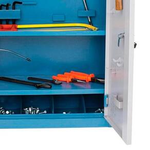 Os armários da Marcon foram projetados com o mais alto nível de tecnologia, com design moderno, compacto e espaçoso por dentro. É a melhor opção para quem procura custo e benefício.Estrutura em chapa de açoChapa perfuradaDivisórias internas para ferramentasPrateleiras2 portasFechamento com chaveCantos ArredondadosPintura epóxi azul e cinza padrão MarconDimensões: 650 x 230 x 980 mm (C x L x A)Obs: Ferramentas não inclusas. Foto meramente ilustrativa.