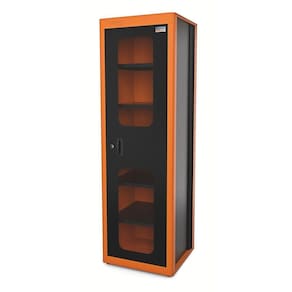 Estrutura em chapas de aço conformadas. 1 porta com abertura de 100 com visores de acrílico. Tranca para a porta. Pintura eletrostática. Capacidade de carga máxima distribuída: 200 kg. Capacidade de carga distribuída de cada prateleira: 60 kg. Espessuras das chapas do corpo, porta e prateleiras: 0,9 mm.Utilizado para armazenamento de ferramentas. Possui 5 prateleiras móveis que possibilitam diferentes configurações de montagem. Com 4 pés para regulagem de altura, para compensar irregularidades no piso. Porta com visores de acrílico que possibilita visualizar a parte interna. Capacidade de carga e resistência da estrutura comprovadas através de testes práticos.