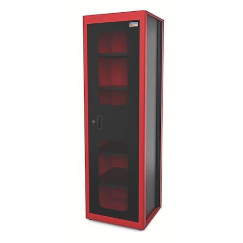 Estrutura em chapas de aço conformadas. 1 porta com abertura de 100 com visores de acrílico. Tranca para a porta. Pintura eletrostática. Capacidade de carga máxima distribuída: 200 kg. Capacidade de carga distribuída de cada prateleira: 60 kg. Espessuras das chapas do corpo, porta e prateleiras: 0,9 mm.Utilizado para armazenamento de ferramentas. Possui 5 prateleiras móveis que possibilitam diferentes configurações de montagem. Com 4 pés para regulagem de altura, para compensar irregularidades no piso. Porta com visores de acrílico que possibilita visualizar a parte interna. Capacidade de carga e resistência da estrutura comprovadas através de testes práticos.