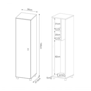 Armário Multiuso, é a peça que faltava para deixar sua area de serviço mais organizada e funcional, com estrutura em MDP de 15mm, pintura com acabamento em Uv (Brilho). Possui 01 porta com dobradiças metálicas, puxador em PVC cromados, 02 nichos que suportam até 5 kg cada, cabideiro com 3 ganchos para pendurar vassoura, rodo ou panos de limpeza, irá tornar suas tarefas diarias muto mais práticas, acompanha 04 sapatas. Este móvel chegará em sua casa separado em 01 volume.