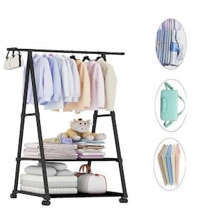Armario Portatil Arara Roupas 2 Prateleiras Carrinho Guarda Sapateira Rodinhas Organizador Preto