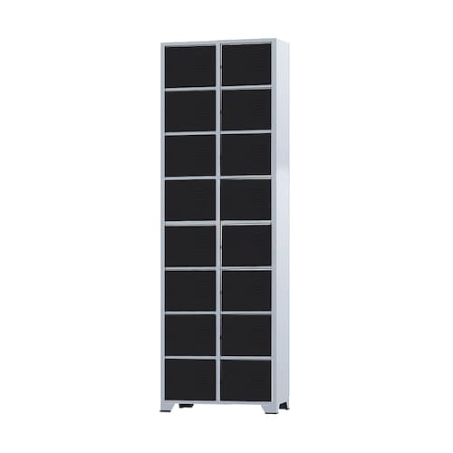 Armário Roupeiro de aço para vestiário,ideal para academias, surpermercados, empresa e para uso geral. Produzido em aço chapa 26 0,45mm de alta qualidade com tratamento anti-ferruginoso, o acabamento em sistema de pintura eletrostática a alta temperatura epóxi, tambem garante maior durabilidade da cor e resistencia a ferrugem. Possui 16 portas com venezianas para ventilação, compartimentos de tamanhos médios independentes sem divisórias internas, que garante que você consiga armazenar itens como bolsas, mochilas e entre outros. O fechamento das portas é através de pitão para cadeado.