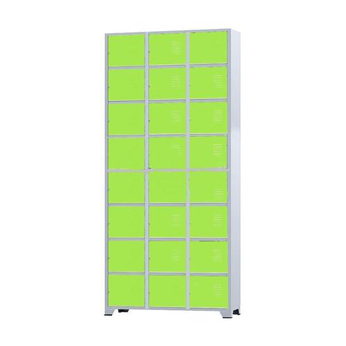Armário Roupeiro de aço para vestiário,ideal para academias, surpermercados, empresa e para uso geral. Produzido em aço chapa 26 0,45mm de alta qualidade com tratamento anti-ferruginoso, o acabamento em sistema de pintura eletrostática a alta temperatura epóxi, tambem garante maior durabilidade da cor e resistencia a ferrugem. Possui 24 portas com venezianas para ventilação, compartimentos de tamanhos médios independentes sem divisórias internas, que garante que você consiga armazenar itens como bolsas, mochilas e entre outros. O fechamento das portas é através de pitão para cadeado.
