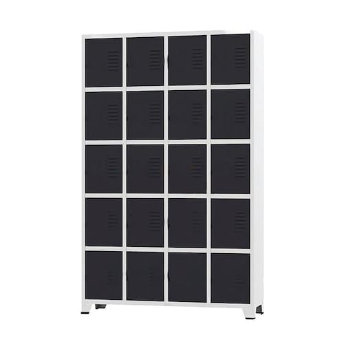 Armário Roupeiro de aço para vestiário,ideal para academias, surpermercados, empresa e para uso geral. Produzido em aço chapa 26 0,45mm de alta qualidade com tratamento anti-ferruginoso, o acabamento em sistema de pintura eletrostática a alta temperatura epóxi, tambem garante maior durabilidade da cor e resistencia a ferrugem. Possui 20 portas com venezianas para ventilação, compartimentos de tamanhos médios independentes sem divisórias internas, que garante que você consiga armazenar itens como bolsas, mochilas e entre outros. O fechamento das portas é através de pitão para cadeado.