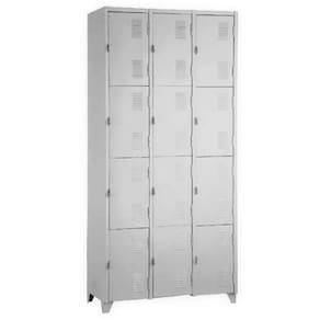 CONEXÃO OFFICEArmário Roupeiro de aço para vestiário,ideal para academias, surpermercados, empresa e para uso geral. Produzido em aço chapa 26 0,45mm de alta qualidade com tratamento anti-ferruginoso, o acabamento em sistema de pintura eletrostática a alta temperatura epóxi, tambem garante maior durabilidade da cor e resistencia a ferrugem. Possui 12 portas com venezianas para ventilação, compartimentos de tamanhos médios independentes sem divisórias internas, que garante que você consiga armazenar itens como bolsas, mochilas e entre outros. O fechamento das portas é através de CHAVE. Características:- Quantidade de Portas: 12- Cor: Cinza Padrão- Chapa: 26 / 0,45mm- Medida das Portas/ Vãos: 046Alt x 027Larg- Sistema de Ventilação: Veneziana- Fechamento: CHAVE- Quantidade de cabides por porta: 0- Pés removíveis: Não- Desmontável: Não ( Exceto portas que podem ser trocadas ).- Pintura: Epóxi PóALTURA: 197cmLARGURA: 92cmPROFUNDIDADE: 36cmPESO: 40kgGARANTIA: 1 MesesEspecificação de chapa e acabamento: Roupeiro produzido em chapa de aço tratada com antiferruginoso por fosfatização e pintura epóxi-pó por processo eletrostático.