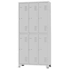 CONEXÃO OFFICEArmário Roupeiro de aço para vestiário,ideal para academias, surpermercados, empresa e para uso geral. Produzido em aço chapa 26 0,45mm de alta qualidade com tratamento anti-ferruginoso, o acabamento em sistema de pintura eletrostática a alta temperatura epóxi, tambem garante maior durabilidade da cor e resistencia a ferrugem. Possui 6 portas com venezianas para ventilação, compartimentos de tamanhos médios independentes sem divisórias internas, que garante que você consiga armazenar itens como bolsas, mochilas e entre outros. O fechamento das portas é através de chave. Características- Quantidade de Portas: 6- Cor: Cinza Padrão- Chapa: 26 / 0,45mm- Medida das Portas/ Vãos: 092Alt x 027Larg- Sistema de Ventilação: Veneziana- Fechamento: chave- Quantidade de cabides por porta: 2- Pés removíveis: Não- Desmontável: Não ( Exceto portas que podem ser trocadas ).- Pintura: Epóxi PóALTURA: 197cmLARGURA: 092cmPROFUNDIDADE: 036cmPESO: 40kgGARANTIA: 1 MesesEspecificação de chapa e acabamento: Roupeiro produzido em chapa de aço tratada com antiferruginoso por fosfatização e pintura epóxi-pó por processo eletrostático.