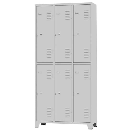 Armário Roupeiro de aço para vestiário,ideal para academias, surpermercados, empresa e para uso geral. Produzido em aço chapa 26 0,45mm de alta qualidade com tratamento anti-ferruginoso, o acabamento em sistema de pintura eletrostática a alta temperatura epóxi, tambem garante maior durabilidade da cor e resistencia a ferrugem. Possui 6 portas com venezianas para ventilação, compartimentos de tamanhos médios independentes sem divisórias internas, que garante que você consiga armazenar itens como bolsas, mochilas e entre outros. O fechamento das portas é através de pitão para cadeado.