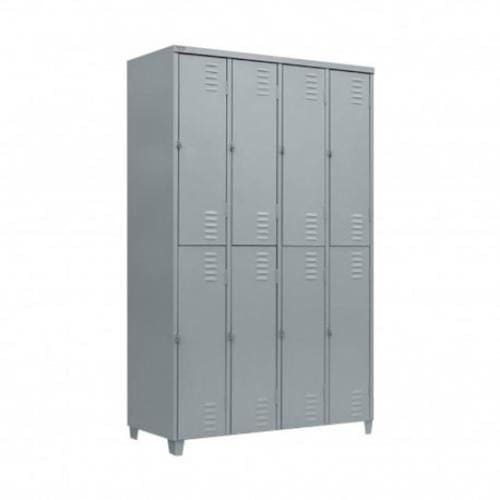 Armário Roupeiro de aço para vestiário,ideal para academias, surpermercados, empresa e para uso geral. Produzido em aço chapa 26 0,45mm de alta qualidade com tratamento anti-ferruginoso, o acabamento em sistema de pintura eletrostática a alta temperatura epóxi, tambem garante maior durabilidade da cor e resistencia a ferrugem. Possui 8 portas com venezianas para ventilação, compartimentos de tamanhos médios independentes sem divisórias internas, que garante que você consiga armazenar itens como bolsas, mochilas e entre outros. O fechamento das portas é através de pitão para cadeado.