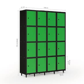 Armário Roupeiro Locker Guarda-volume de Aço 16 Portas Pequenas com Fecho para Cadeado Vestiário Verde/Preto