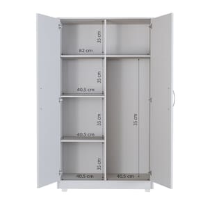 O Multiuso/Roupeiro Organizador Branco oferece uma solução funcional para diversos ambientes, como quartos, lavanderias, escritórios ou áreas de serviço. Possui espaço interno distribuído com prateleiras e cabideiro metálico, permitindo acomodar roupas, calçados, toalhas, brinquedos ou itens de uso diário.