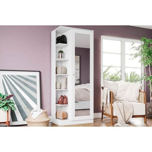 Armário Sapateira Quarto Duetto c/ 1 Porta c/ Espelho Branco - Henn