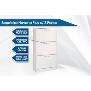 Armário Sapateira Quarto Havana Plus c/ 3 Portas Branco - Santos Andirá
