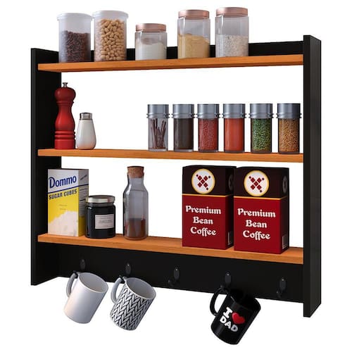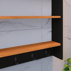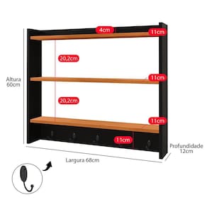 Ele conta com duas prateleiras e cinco ganchos, atributos que podem ser utilizados para auxiliar na organização. Suas prateleiras são ideais para acomodar porta-temperos, peças decorativas e utensílios de cozinha. Já seus ganchos podem ser utilizados para pendurar canecas, xicaras, panos de prato e até chaves, fazendo do armário um produto versátil que pode ser utilizado em diversos ambientes da casa.