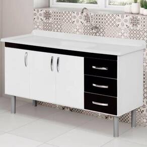 Armário Tóquio 144,2cm Branco com Preto - 539415 - A.J.RORATO