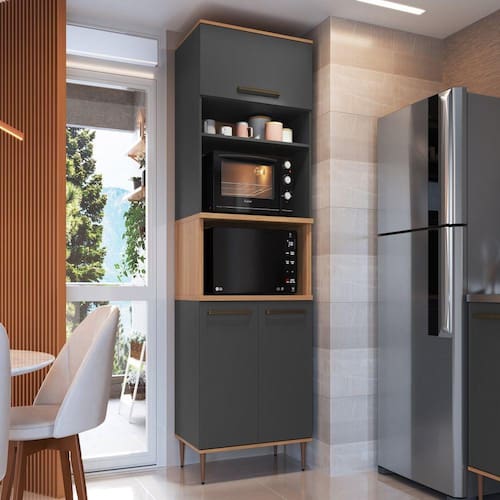 Módulo com espaço para 2 Fornos Isabelle, produto com ótimo acabamento todo em MDP 15mm e 25mm, possui 1 porta basculante e 2 gavetões com amplo espaço, com dobradiças com amortecimento e pistão a gás, corrediças telescópicas, um nicho, puxador alumínio com ponteiras em ABS. É um módulo avulso da cozinha modulada Isabelle, ideal para compor sua cozinha da forma que desejar, oferecendo diversas combinações, você pode completar sua cozinha adquirindo outros módulos que são vendidos avulsos. Acabamento da Gaveta: Finish Foil Escala de Brilho da Gaveta: Fosco Material do Puxador da Gaveta: Alumínio Acabamento da Porta: Finish Foil Escala de Brilho da Porta: Fosco Material do Puxador da Porta: Alumínio Acabamento dos Pés: Polipropileno Acompanha Tampo: Não Altura dos Pés: 17 cm Ambiente Principal: Cozinha codigo_ean: 7909903364611 Complexidade da Montagem: Média: pode ser montado por mais de uma pessoa e/ou necessite de maior conhecimento para montagem Cor: Freijó/Grafite Cor do Produto: Freijó/Grafite Cor Flex: Não Cor Interna: Freijó Escala de Brilho: Fosco Espessura do Material da Estrutura: 15 mm Gaveta com Chave: Não Informações Complementares: Total Itens Inclusos: 1 Armário, Manual de Montagem e Kit Ferragens Linha ou Coleção: Isabelle Manual de Montagem e Instalação: https://product-hub-prd.madeiramadeira.com.br/861117/documents/0640144a-a4b8-4a05-b693-b9ee9e40757c1421918is1812manual.pdf Material da Dobradiça/Corrediça da Porta: Aço Material da Gaveta: MDP Material da Porta: MDP Material dos Pés: Polipropileno modular: Sim Montagem Flex: Não Necessita Montagem: Sim O Balcão Acompanha Pia: Não Origem do Produto: Nacional Pés Reguláveis: Sim Peso: 47,79 kg Peso Máximo por Gaveta: 5 kg Possui Espelho: Não Possui Possui Pés: 04 Possui Portas: Sim Possui Prateleiras: Não Possui Rodízio: Não Possui Vidro: Não Produto Montado: Sim Recomendações de Uso, Manutenção e Limpeza: Para limpeza do móvel, use uma flanela seca Sapatas Niveladoras: Não Sistema de Montagem: Parafusos, Cavilhas e Minifix Suporta Até (kg): 25 kg Tipo de Corrediça da Gaveta: Metálica Telescópica Tipo de Dobradiça/Corrediça da Porta: Soft close Tipo de Puxador da Gaveta: Externo Tipo de Puxador da Porta: Externo Ean: 7909903364611