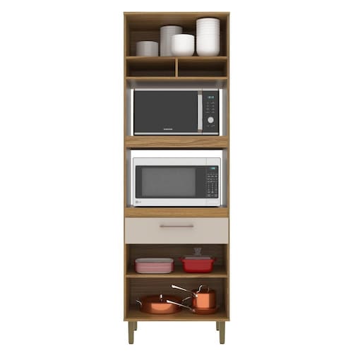 O Paneleiro Torre Quente da Decibal é produzido em MDP é um módulo de composição da Cozinha Concept Prime. Conta com 3 portas, sendo 1 basculante e 2 de bater com acabamento em pintura UV. Seus puxadores em alumínio, dobradiças metálicas e corrediças telescópicas. Todas as peças são numeradas para facilitar na hora da montagem . Acabamento da Gaveta: Pintura UV Acabamento da Porta: Pintura UV Acabamento da Prateleira: Pintura UV Altura dos Pés: 17 cm Ambiente Principal: Cozinha Complexidade da Montagem: Média: pode ser montado por mais de uma pessoa e/ou necessite de maior conhecimento para montagem Cor: Ipê/Cristalo Cor do Produto: Ipê/Cristalo Cor Interna: Ipê Escala de Brilho: Fosco Escala de Brilho da Porta: Brilhante Escala de Brilho da Prateleira: Fosco Gaveta com Chave: Não Itens Inclusos: 1 Módulo Forno, 1 Kit Ferragens e 1 Manual de Montagem Linha ou Coleção: Concept Prime Manual de Especificação Técnica: https://product-hub-prd.madeiramadeira.com.br/894534/documents/810c1122-94aa-44b1-b952-c33cf1c1c19b1817970co7310.pdf Manual de Montagem e Instalação: https://product-hub-prd.madeiramadeira.com.br/894534/documents/edcf78e6-2de4-4364-9087-3c9eaa0be0662021807109117175108594922.pdf Material da Dobradiça/Corrediça da Porta: Metálica Material da Gaveta: MDP Material da Porta: MDP Material da Prateleira: MDP Material dos Pés: Plástico Necessita Montagem: Sim Origem do Produto: Nacional Peso: 57,59 kg Peso Máximo por Gaveta: 2 kg Peso Máximo por Prateleira: 3 kg Possui Espelho: Não Possui Possui Pés: 04 Possui Portas: 03 Possui Prateleiras: 06 Possui Rodízio: Não Recomendações de Uso, Manutenção e Limpeza: Limpar com pano seco ou úmido somente Sapatas Niveladoras: Sim Sistema de Montagem: Parafusos, pregos, cavilhas e buchas Tipo de Corrediça da Gaveta: Telescópica Tipo de Dobradiça/Corrediça da Porta: 35 mm Tipo de Puxador da Gaveta: Externo Tipo de Puxador da Porta: Externo