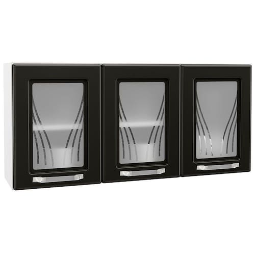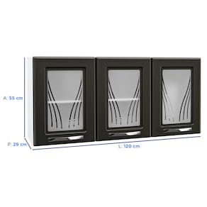 Caracteristicas: Armario triplo em aco, medindo 120cm de largura por 55cm de altura. Pintura eletrostatica a po, mais resistencia e durabilidade ao produto. Puxadores em acrilico, mais beleza ao produto. Vidros temperados e serigrafados, mais seguranca e beleza ao produto. Este produto se diferencia por sua beleza estetica e resistencia. Ideal para complemento de cozinha, garagens e areas de servico.