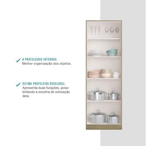 O Armário de Cozinha Multiuso Carraro é a peça ideal para ser utilizada em diferentes cômodos da casa, ajudando a manter todos os objetos em ordem e assim facilitando as tarefas do dia a dia. É uma solução indispensável para quem precisa de mais espaço e organização para o ambiente, pois conta com diversas prateleiras internas.Especificações do Produto:Medidas: Largura: 56 cm | Altura: 169 cm | Profundidade: 33,5 cmPeso: 24,8 KgMatéria Prima: MDPPortas: 2 portas de batenteSistema Abertura: Dobradiça 26mmPuxador: ABSPrateleiras: 4 (5 nichos)Peso suportado em cada prateleira: Até 10 Kg