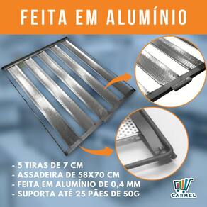 A Assadeira para pão francês ou salgado INNAL é feita em aço alumínio e possui 5 tiras com capacidade para até 25 pães de 50g. O fundo da assadeira é feito de tela de alumínio perfurada, facilitando o trabalho e a limpeza do produto.